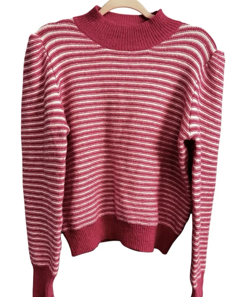 Strut and Bolt New hot pink striped fuzzy sweater size large mock neck girly - $28 New With Tags - From April