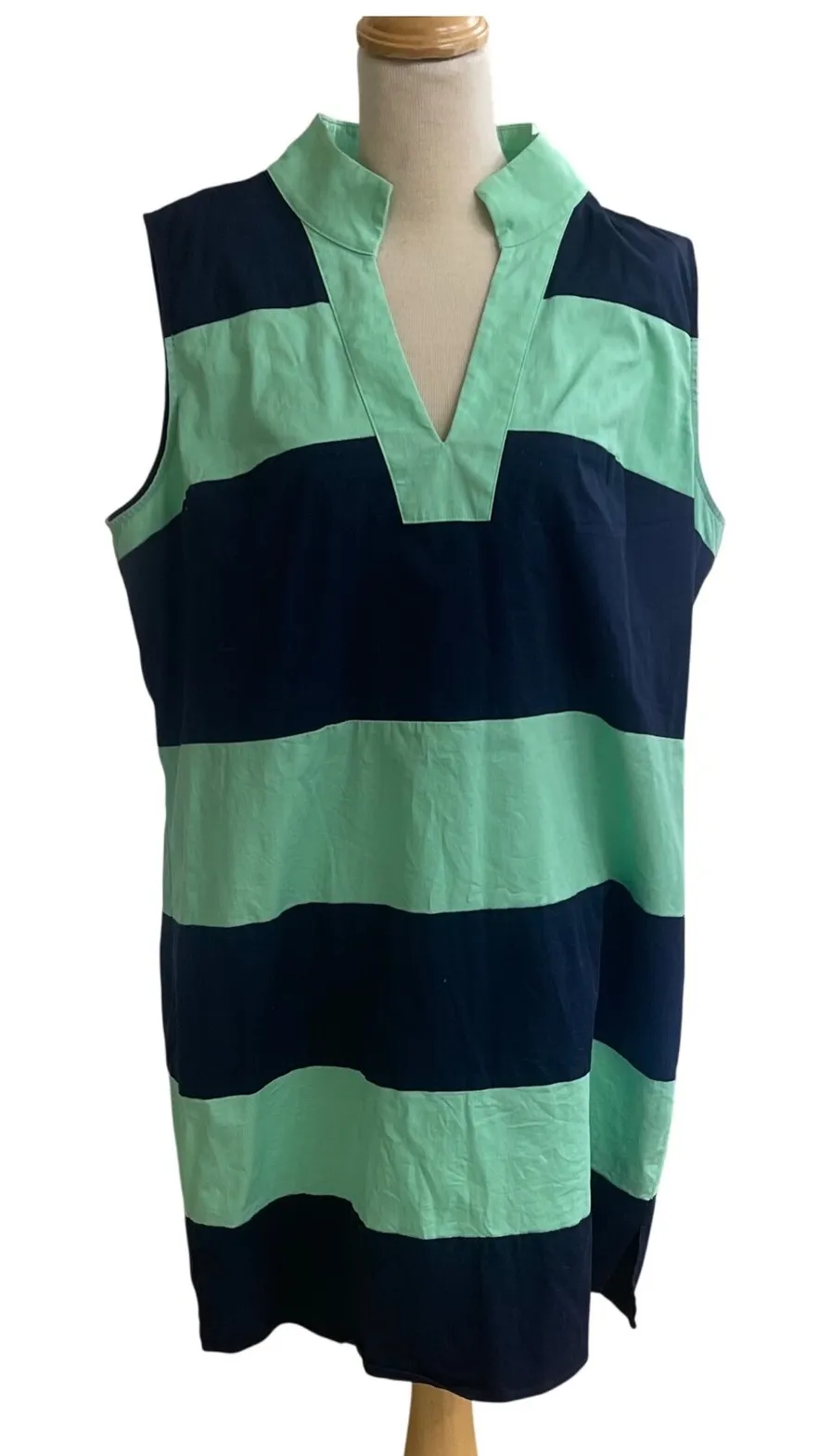 A striped sleeveless collared polo shirt dress by STS Sail to Sable. STS Sail to Sable Striped Sleeveless Collared Polo Shirt Dress Navy Mint XL midi dress Gently used see all pics and approx measurements Bin 2 Pre owned Style: Shirt Dress, Tank Dress Dress Length: Midi Department: Women Sleeve Length: Sleeveless Pattern: Striped Occasion: Casual Material: Cotton/ spandex blend Fabric Type: Woven Theme: Preppy, Beach Neckline: Collared Season: Summer, Spring Sleeve Type: Strapless Closure: Zip Accents: Zipper Features: Pockets Unit Type: Unit Keywords: STS Sail to Sable, striped dress, polo dress, collared dress, sleeveless dress, preppy, nautical, coastal, resort wear, summer dress, casual dress, golf dress, tennis dress Please see all approximate measurements. Please ask any questions before purchasing