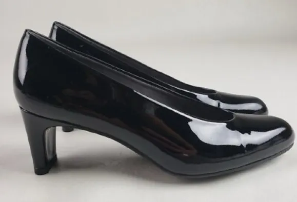 Stuart Weitzman for Russell & Bromley Bond Street London Black Patent Leather Slim Block Heels Pump... Show more