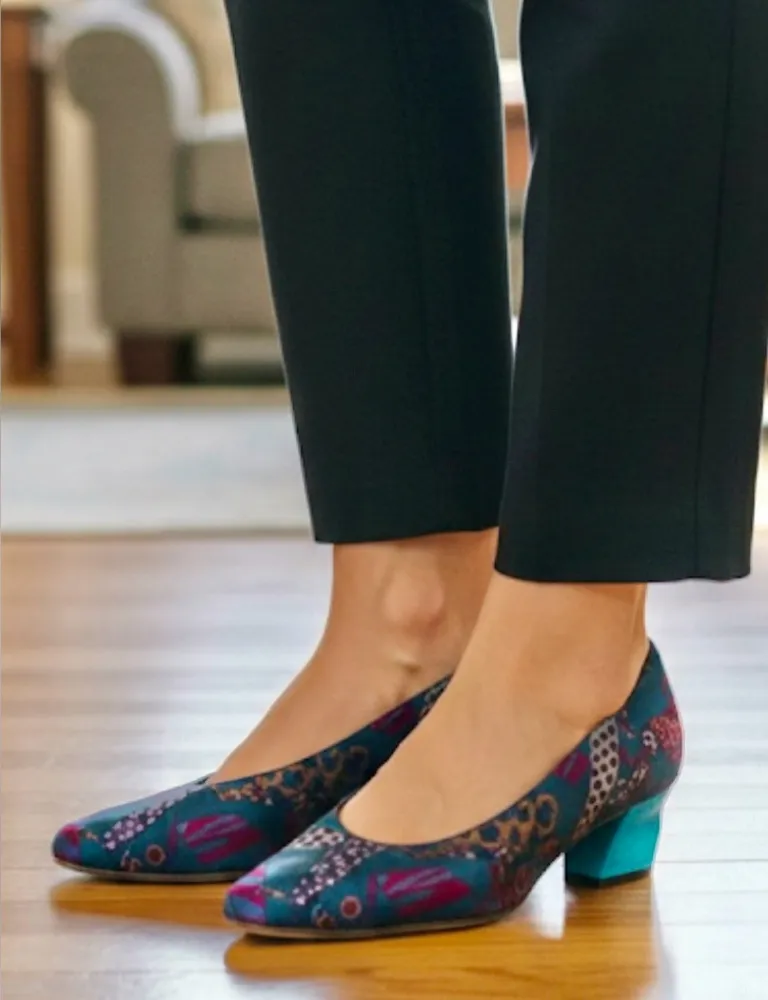 These unique and fun pumps are in good condition, with normal wear and tear (the heels/heel caps are... Show more