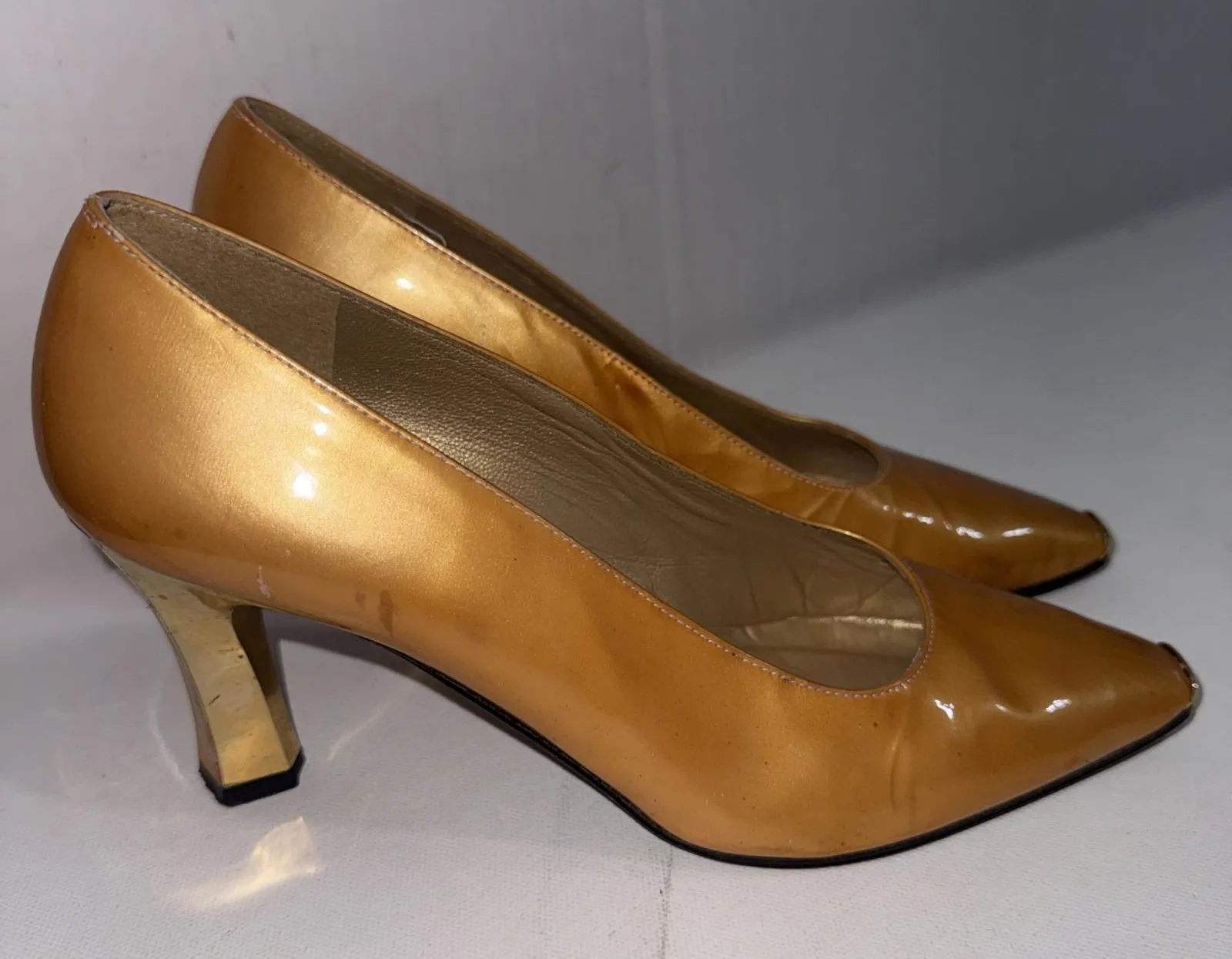 Stuart Weitzman Vintage Y2K 90s Old Money Yellow Gold Point Capped Toe Heels in USA Women’s Size 7.5... Show more