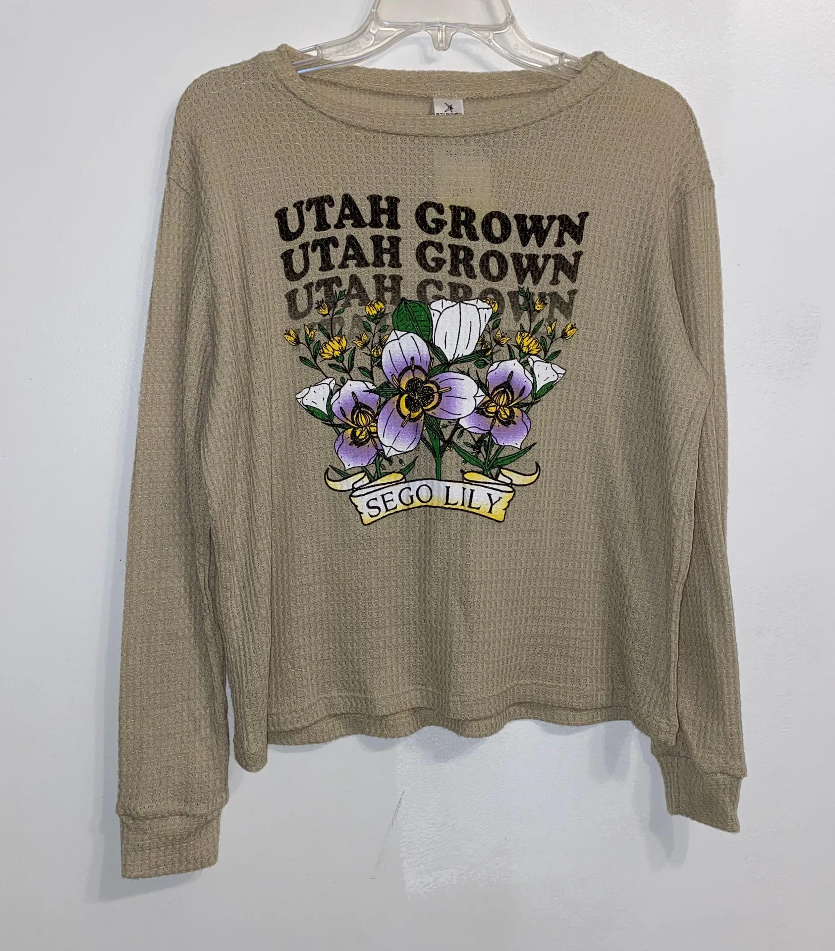 Stunner California NWOT Stunner Beige California Graphics “Utah Grown” & “Sergo Lily” Top L Tan Size L - $25 (75% Off Retail) - From Maria