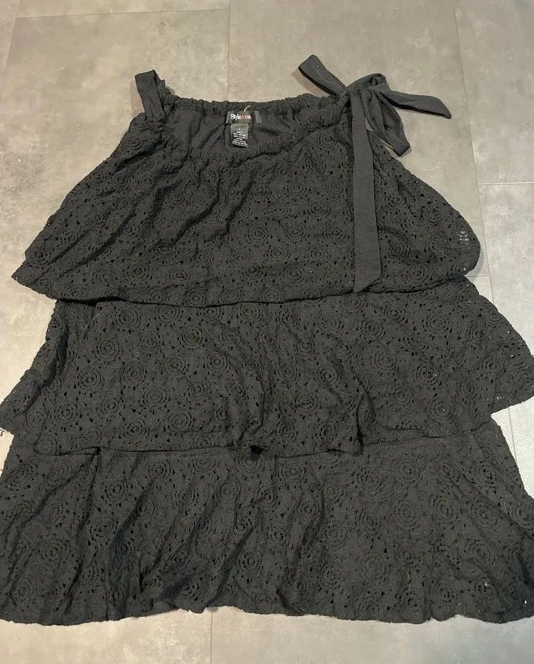 Elevate your evening wardrobe with this stunning black lace shirt from Style & Co. The intricate flo... Show more