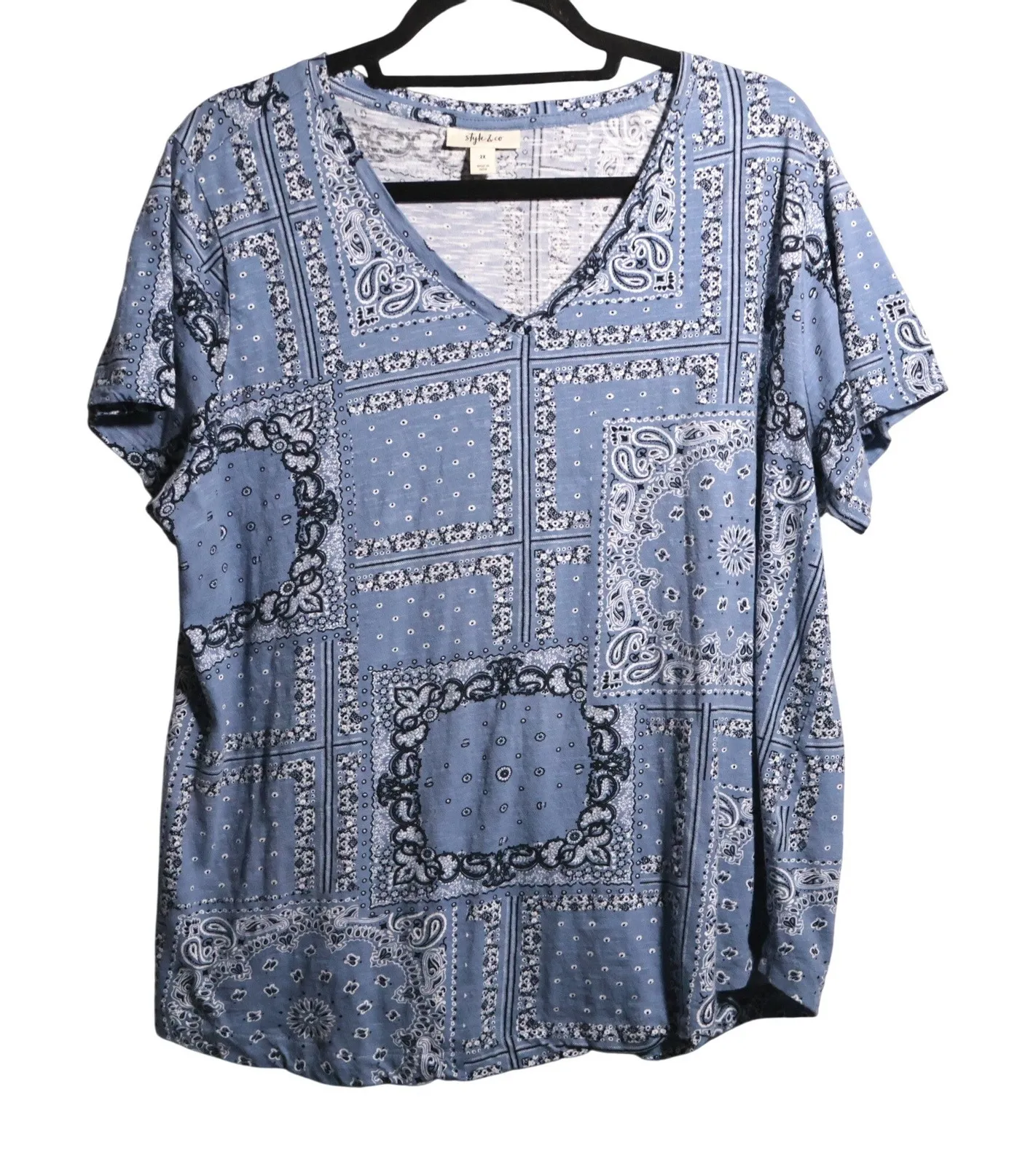 Measurements: • Chest (across): 24.5 in • Length: 25 in Keywords: plus size, bandana print, paisley... Show more