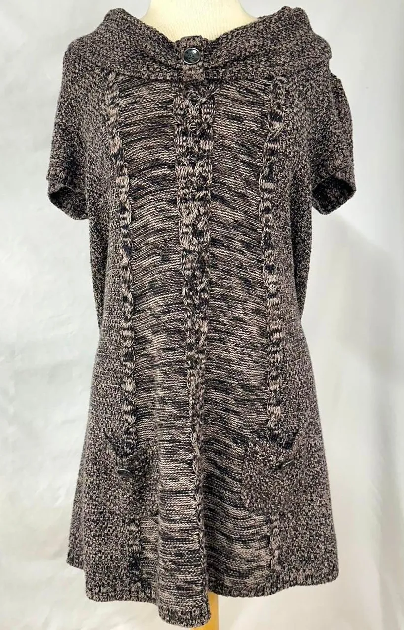 style & co brown short sleeve chunky cable knit mini sweater dress with pockets, size xl absolutely... Show more