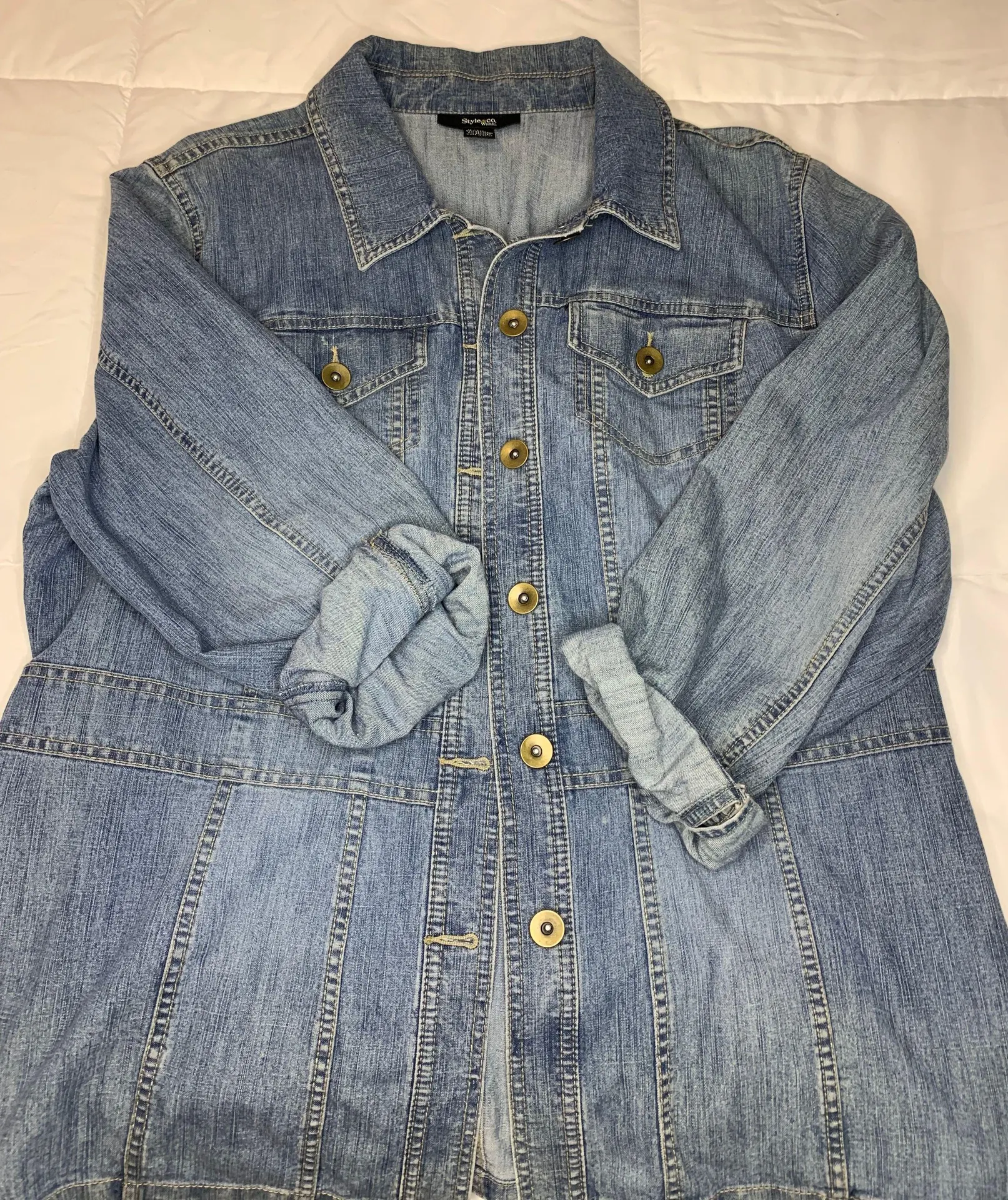 Size 16W Wore as an oversized denim jacket No pockets Super cute but again just don’t wear it enou... Show more