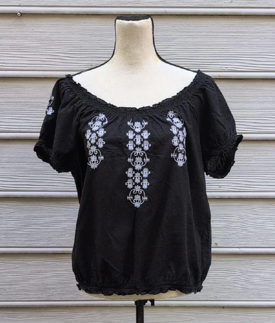 Style & Co size medium black elastic top and hem shirt. top can be short sleeve or off the shoulder.... Show more