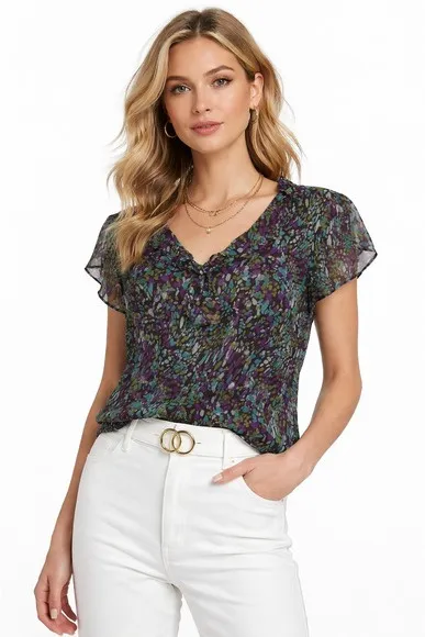 Style & Co Floral Chiffon Short Sleeve Blouse NWT Measurements Laying Flat!! Size -14 Armpit to Armp... Show more