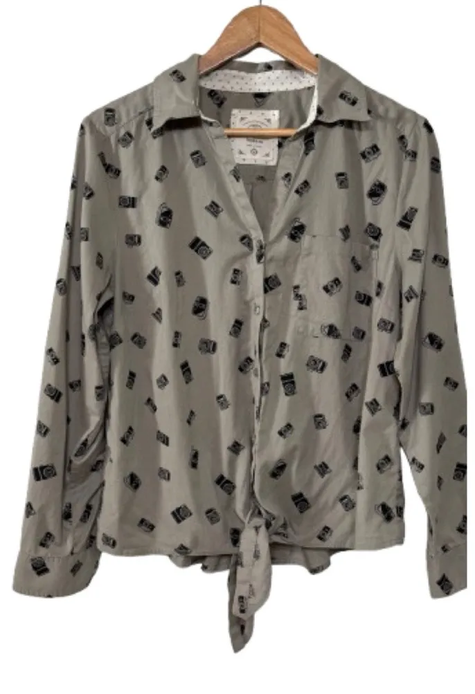 Size: M Condition: Good preloved condition. Minor wear Color: Taupe, black Closure: Button, tie M... Show more