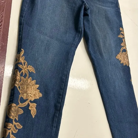These jeans are in perfect condition. Very nice. I really like these jeans. They’re size 14.