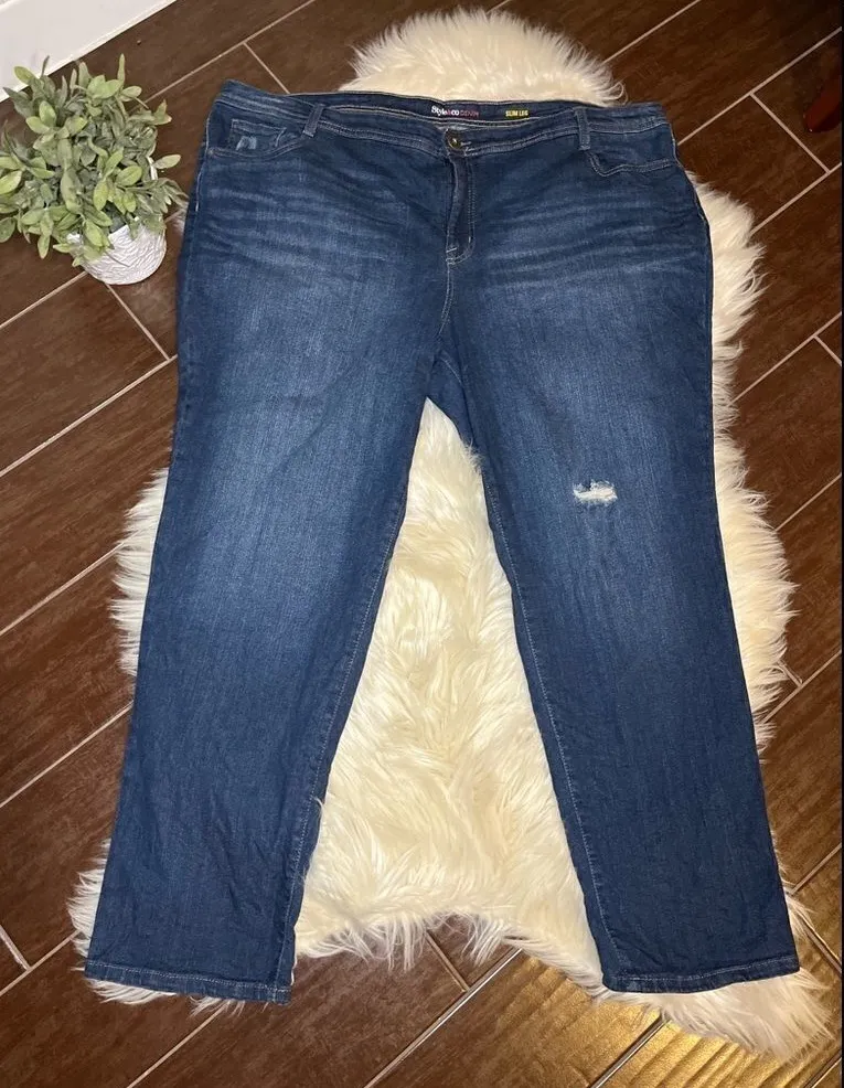 Style & Company slim leg crop Distressed denim sz 24W,measurements in photos Preloved, EUC