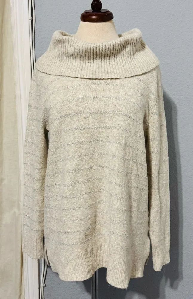Elegant cream cowl neck sweater. Soft and comfortable. Ideal for layering. Preowned - Good conditio... Show more