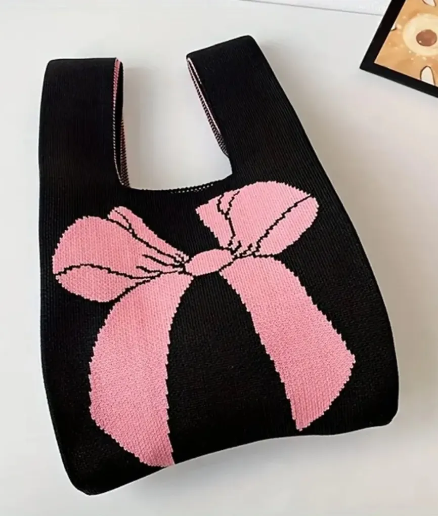 Stylish Black Pink‎ Bow Knit Style Handbag Fashionable Design Versatile Wristlet - $28 New With Tags - From Mon