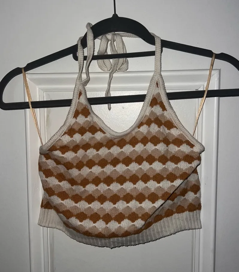 Stylish Cream and Brown Women's Halter Top Size XS - $12 - From Sarah