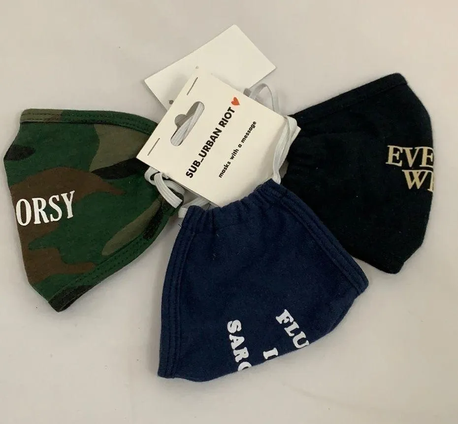 Face Masks With A Message “Outdoorsy” “Fluent‎ in Sarcasm” & “Evening Wear” - $10 New With Tags - From Jennifer