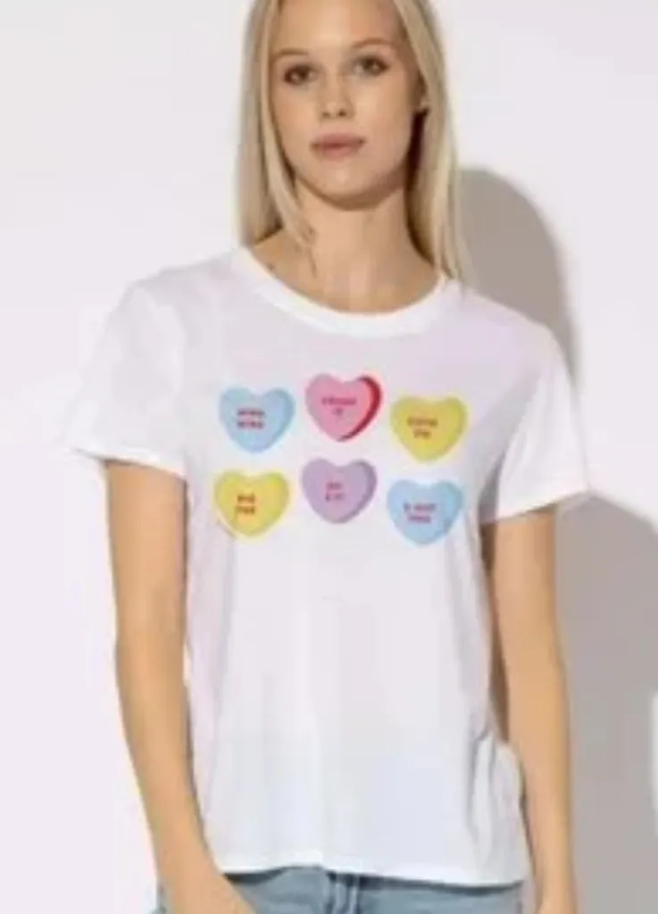 From Sub_Urban Riot comes the officially licensed, basic boyfriend fit Crewneck Candy Hearts tee in... Show more