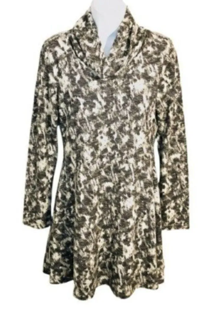 Sugar Lips Abstract Print Swing Mini Dress Cream Black Juniors Large. Long sleeves. Cowl Funnel Neck... Show more