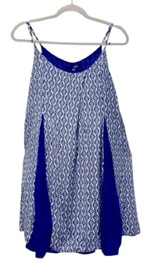 Lightweight and easy to wear Sugarlips sleeveless dress in a blue and white geometric print. A-line... Show more