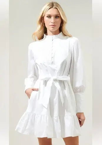 This stunning white dress by Sugarlips features a mock neck and bishop sleeves, offering a sophistic... Show more