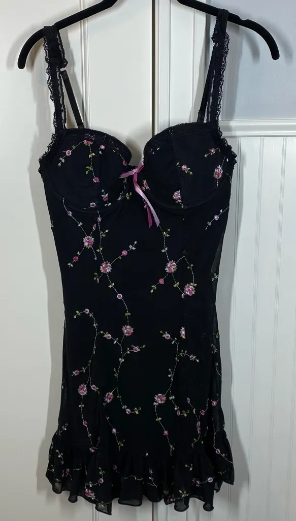 Gently used Size large 33” length Doll's Kill Sugar Thrillz I'm Baby mini slip dress. •Mesh material over black lining, with all over embroidered pink and green floral print. •Sweetheart neckline and lacy adjustable straps •hook closure on the back •Ruffle hems •Padded cups with underwire •100% nylon We appreciate you checking out The Vintage Fern! Please feel free to send an offer via the offer button! Whimsigoth, practical magic, Stevie Nicks, Florence Welch, Lisa Bonet, Helena Bonham Carter, bohemian, gothic, goth, whimsical, magical, 90’s, cosplay, costume, lingerie, sexy, babygirl, baddie