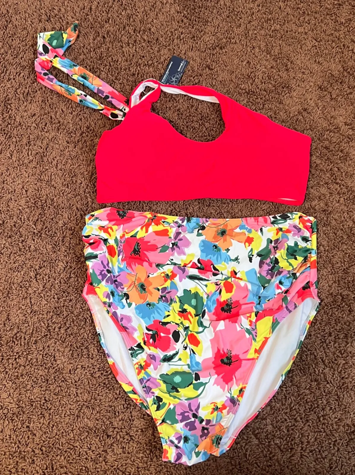 Summer Mae Red Halter Bikini Top High Waist Floral Print Swimsuit Set Size XL NWT Dive into summer bliss with this stunning bikini set, designed to make you feel confident and radiant. The vibrant floral print on the high-waisted bottoms bursts with a kaleidoscope of colors, promising to turn heads as you stroll along the beach or lounge by the pool. The bold red halter top offers a flattering silhouette, ensuring both style and comfort. This chic ensemble is perfect for a tropical getaway, a fun-filled day at the beach, or a relaxing poolside afternoon. Type: Bikini Department: Women Theme: Floral, Tropical, Beach, Vacation, Poolside Material: Nylon Blend, Spandex Blend, Polyester Blend Swim Bottom Style: High-Waisted Features: Adjustable Strap, Lined, Stretch, Quick Dry Swim Top Style: Bikini Top Pattern: Floral Accents: Strap Strap Type: Halter Keywords: Summer Mae bikini, red halter bikini top, high waist floral bottoms, women's swimsuit set, XL bikini, tropical print swimwear, beachwear, poolside attire, vacation clothing, floral print swimsuit, red bikini top, high rise bikini, two piece swimsuit Ships 1-3 business days after purchase Comes from a pet free/ smoke free environment Please feel free to reach out to me if you have any questions. SKU:10077468-90