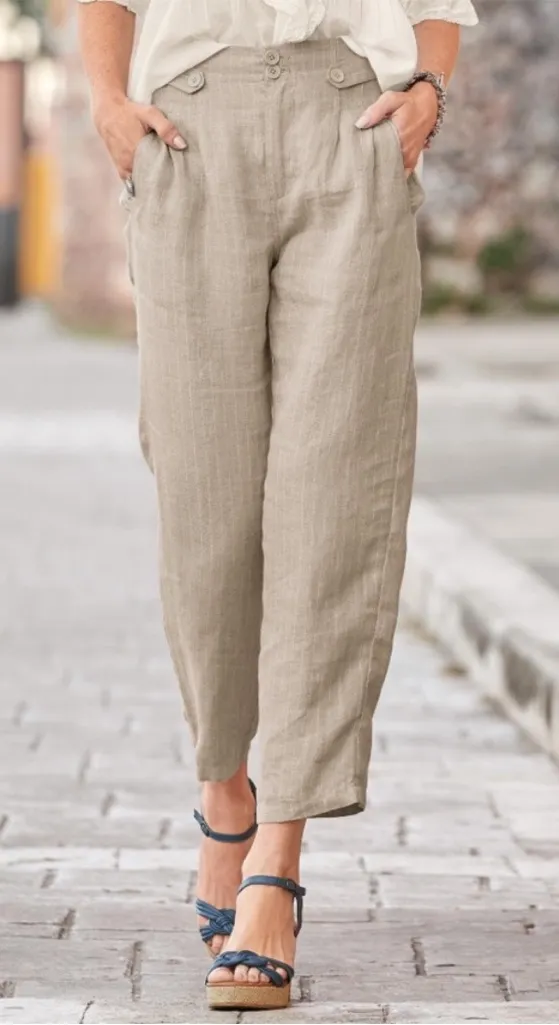 Sundance Amaya 100% Linen Ankle Trouser Pants in Beige Pinstripe Size 4 Tan - $28 - From Kiana