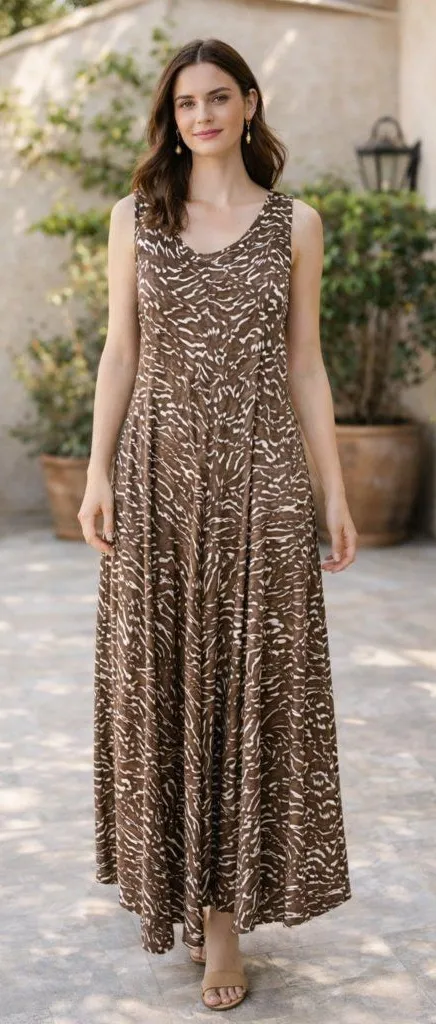 This beautiful Sundance dress offers an effortlessly chic, bohemian-inspired look with its flowing silhouette and striking abstract print. Created from 100% rayon, it drapes gracefully and moves with lightweight ease, making it the perfect piece for warm-weather outings, relaxed weekends, or laid-back vacation style. The sleeveless cut and soft scoop neckline add to its breezy comfort, while the natural flow of the fabric gives it a flattering, feminine feel. Shown in a casual lifestyle setting, it captures that easy Sundance aesthetic—unique, artistic, and endlessly wearable. FEATURES 100% rayon fabric with a soft, fluid drape Brown and cream abstract print reminiscent of organic, nature-inspired patterns Sleeveless design for comfortable layering or warm-weather wear Relaxed, easy silhouette that flatters without clinging Maxi length for an elegant, effortless look Beautiful movement when worn High-quality Sundance craftsmanship Size: 14 Bust - 20" pit to pit Waist - 17.5" across Hips - 35" across Length - 51" back neck to hem Measurements are taken flat and are approximate. Please compare with a similar item to ensure a good fit. Fabric Content - 100% Rayon Care - Machine wash Excellent condition with no flaws noted Color appearance may vary depending on your monitor settings. All previously owned items have been cleaned and sanitized.
