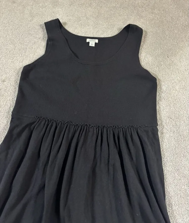 This is a stylish A-line midi dress from Sundance for women in size small. It is made from a comfortable cotton silk blend knit fabric in black color. The dress features a sleeveless design and is suitable for regular size. Bg1711