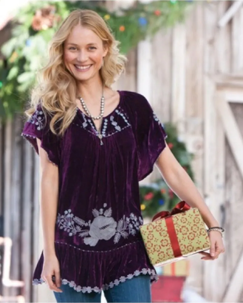 Sundance Embroidered Silk Blend Just Devine Tunic Top Purple Velvet Fairy Size M Size M - $60 - From Elmee