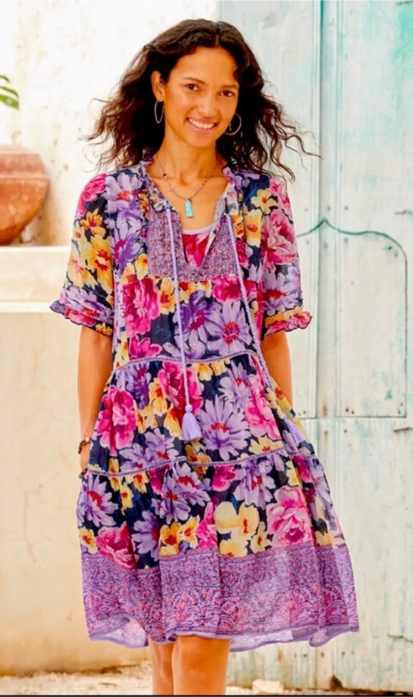 Capture effortless bohemian charm with this vibrant Sundance tiered dress. Its playful floral print... Show more