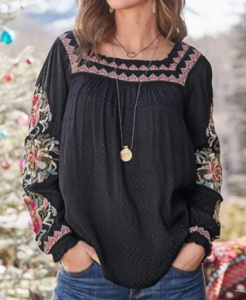 Sundance Floral Embroidered Artists Vision Tunic Size Small Black Pink Black - $38 - From susie
