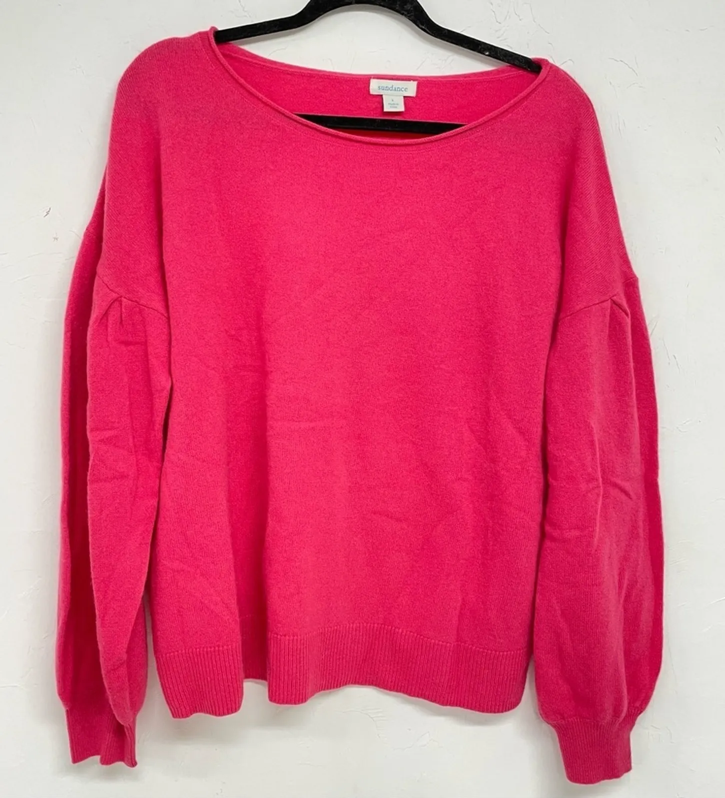 Sundance Hot Pink Cashmere Crew Neck Balloon Sleeve Sweater L Barbie Core Size L - $58 - From Lisa