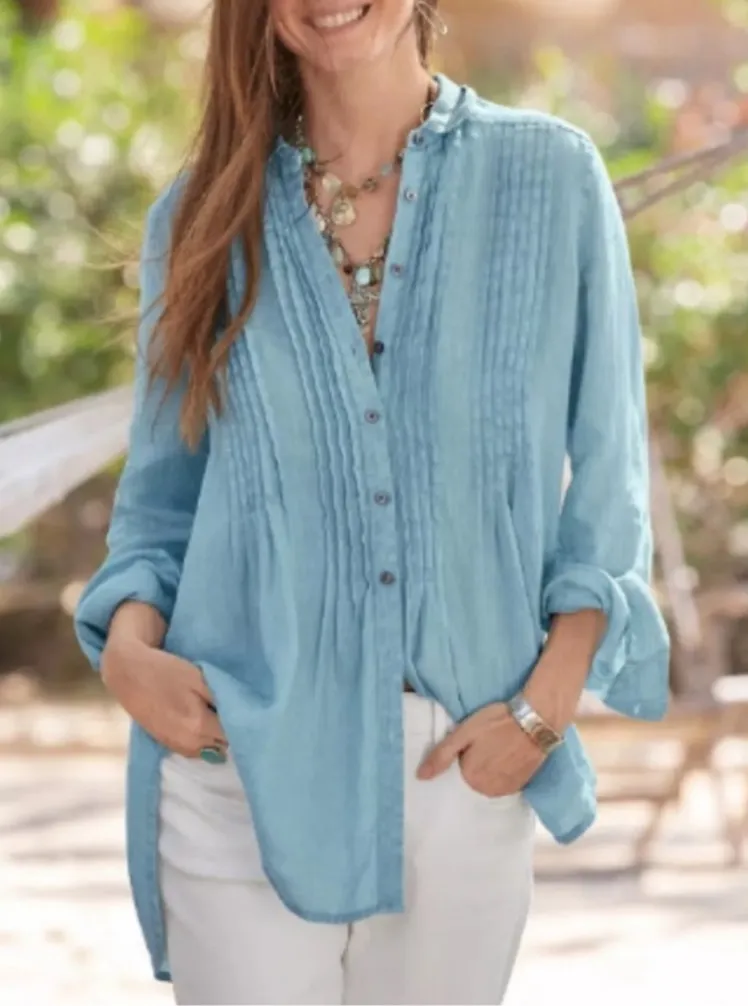 Sundance Katina Shirt 100% Linen Pintuck Tunic Top Button Front Blue XS NWOT This top is technically new without tags. The color is more of a teal green/blue Please see all pictures for the condition and measurements of this top.
