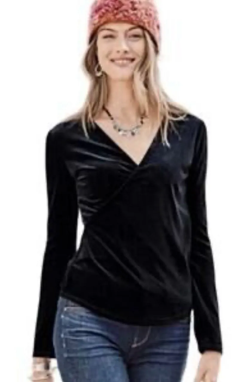 Sundance Morgan Velvet Faux Wrap Long Sleeve Top in black Woman's Large Boho. Excellent pre-owned Condition, No flaws to note. Approximate Measurements Laying Flat. Chest-20" Length-25"