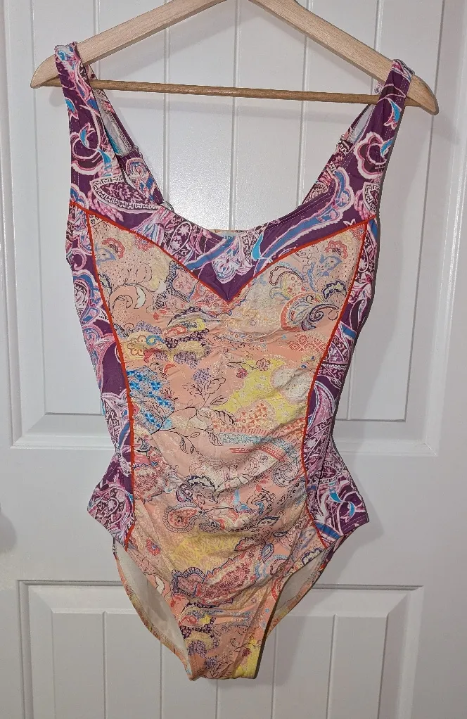 Sundance Paisley Print Two Tone One Piece Swimsuit Women's Medium Purple/Yellow Yellow - $75 - From Courtney