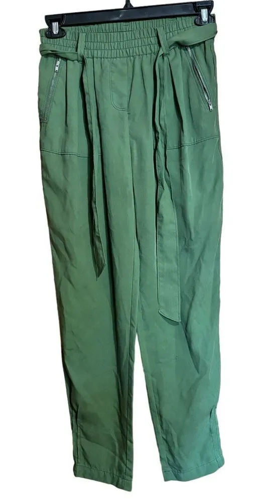 Elevate your summer wardrobe with these stylish green Chino pants from Sundance. The tie waist and smocked design create a flattering silhouette, while the Tencel fabric ensures comfort and breathability. These short-length pants in size 4 feature pockets, making them functional and versatile for any occasion. Perfect for a casual day out or a dressier event, these pants are a must-have for any fashion-forward woman's closet.