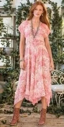 Style: Sundress, A-Line Dress Length: Midi Color: Pink Department: Women Sleeve Length: Short Sleeve Pattern: Floral Occasion: Casual, Party/Cocktail, Travel Material: 100% Silk Neckline: V-Neck Character: Bohemian, Boho, Angel, Summer, Floral Fabric Type: Chiffon Season: Summer, Spring Length: 40.5" (longest point 50") Keywords: Sundance dress, silk dress, floral dress, v neck dress, handkerchief hem dress, summer dress, boho dress, bohemian dress, size 6 dress, pink dress, beige dress, silk floral dress, casual dress, midi dress **Fast Shipping / Smoke Free Home**
