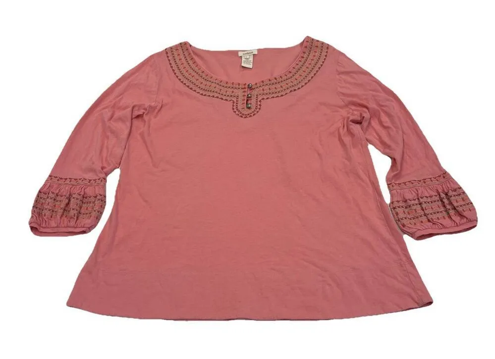 SUNDANCE Womens Coral Orange Embroidered 3/4 Sleeve Blouse 100% cotton Size Large Fitted through the... Show more