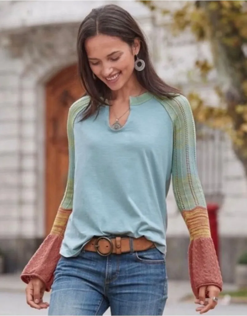 Sundance Womens Small Multicolor Cozy Canyon Knit Bell Sleeve Boho Blouse Size S Blue - $42 - From Tessa