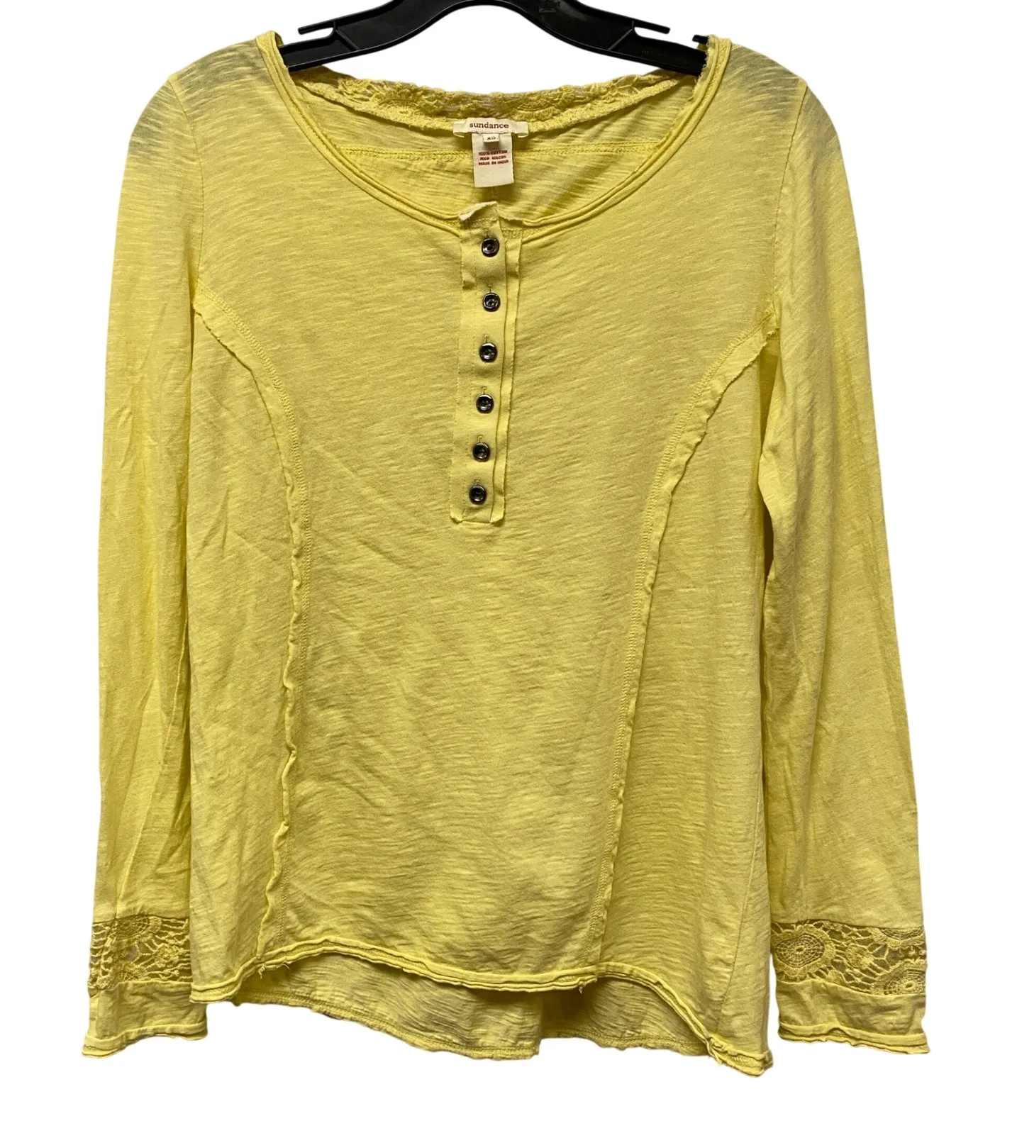 Preloved in excellent condition Women's size XS Please see all photos for close up details and measurements . Type: T-Shirt Department: Women Style: Tunic Material: 100% Cotton Neckline: Henley Sleeve Length: Long Sleeve Sleeve Type: Classic/Fitted Sleeve Pattern: Solid Accents: Button, Crochet Theme: Peasant Features: Lightweight, Sheer Fit: Relaxed Fabric Type: Knit Occasion: Casual Keywords: sundance, yellow top, long sleeve, henley, lace trim, cotton, boho, feminine, casual, lightweight, textured, crew neck