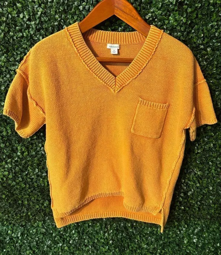 Sundance Yellow Orange Short Sleeve Sweater Top Size Medium Yellow - $21 - From Madison