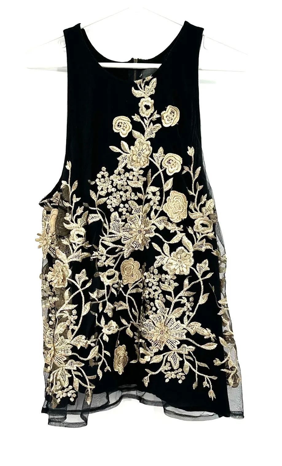 Sunday in Brooklyn Sz 4‎ Blouse Black Sheer White Floral Roses Sleeveless Formal - $18 - From Taylor