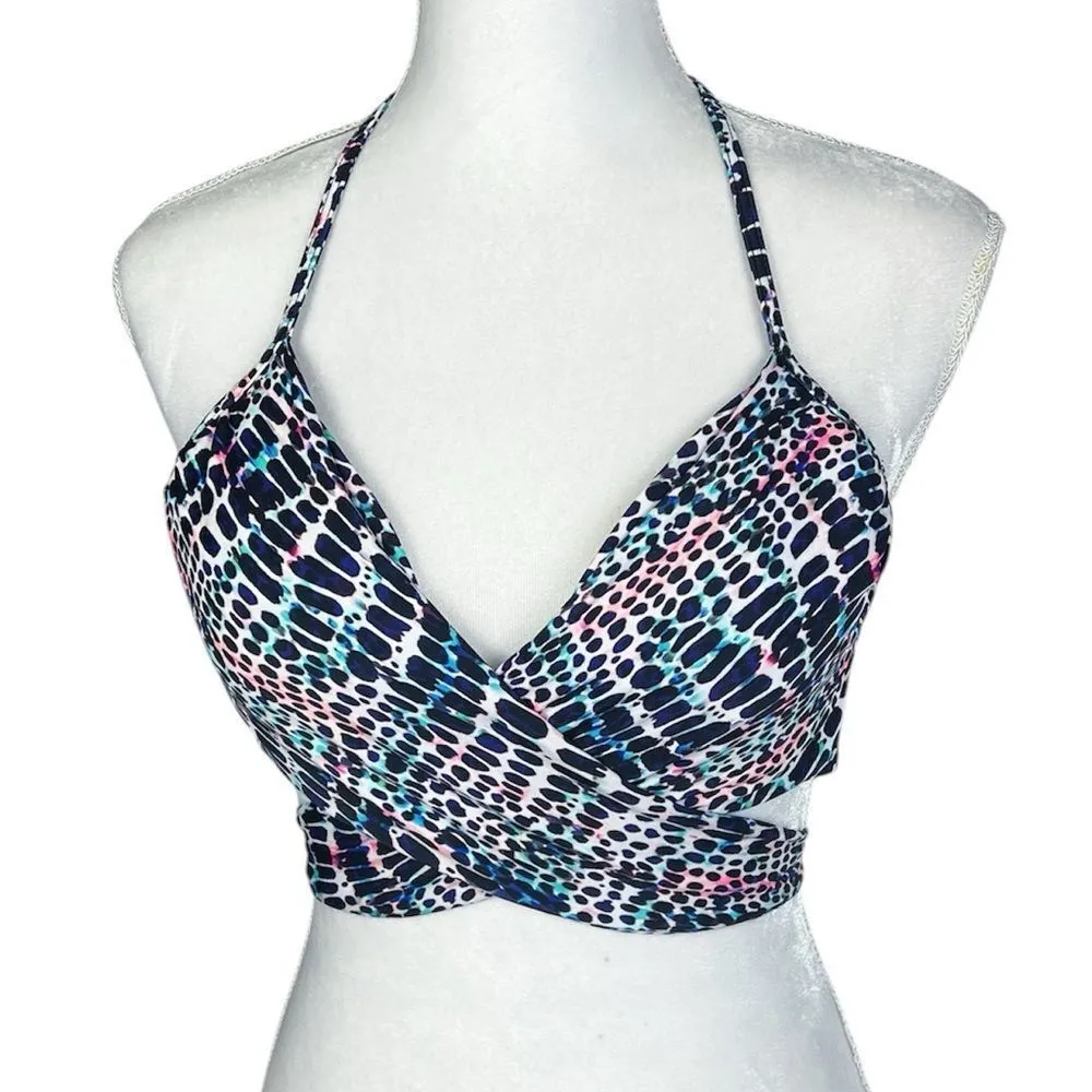 Super cute pre-owned Sundazed Bright Multi Blue & White Underwire Bikini Top Size 36C. Wrap Front ov... Show more