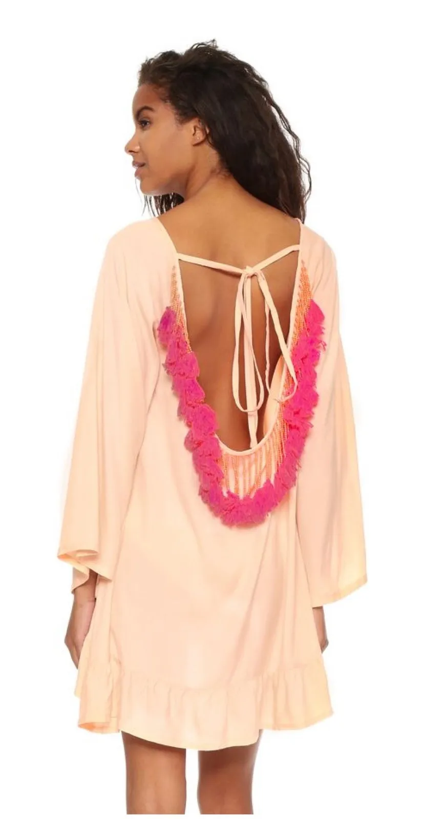 Sundress Indiana Dress Tunic in Peach / Neon Pink Features beaded tassel trim, back tie closure, a... Show more