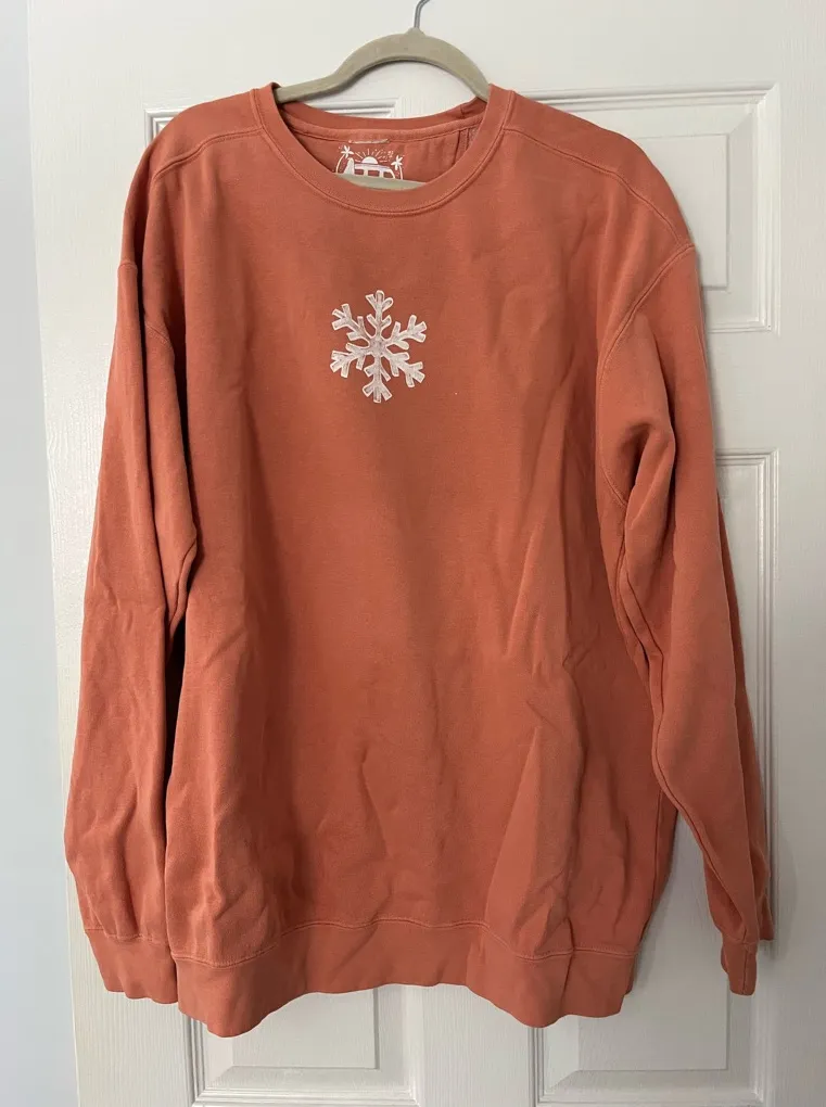 Sunkissed Coconut Rust Orange Snowflake Sweatshirt White Size XL - $19 - From Carrie