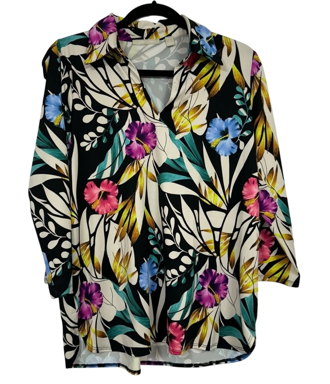 Sunny Leigh Black Floral 3/4 Sleeve Blouse Womens S Casual Fall Classic Tropical - $20 - From Lisa