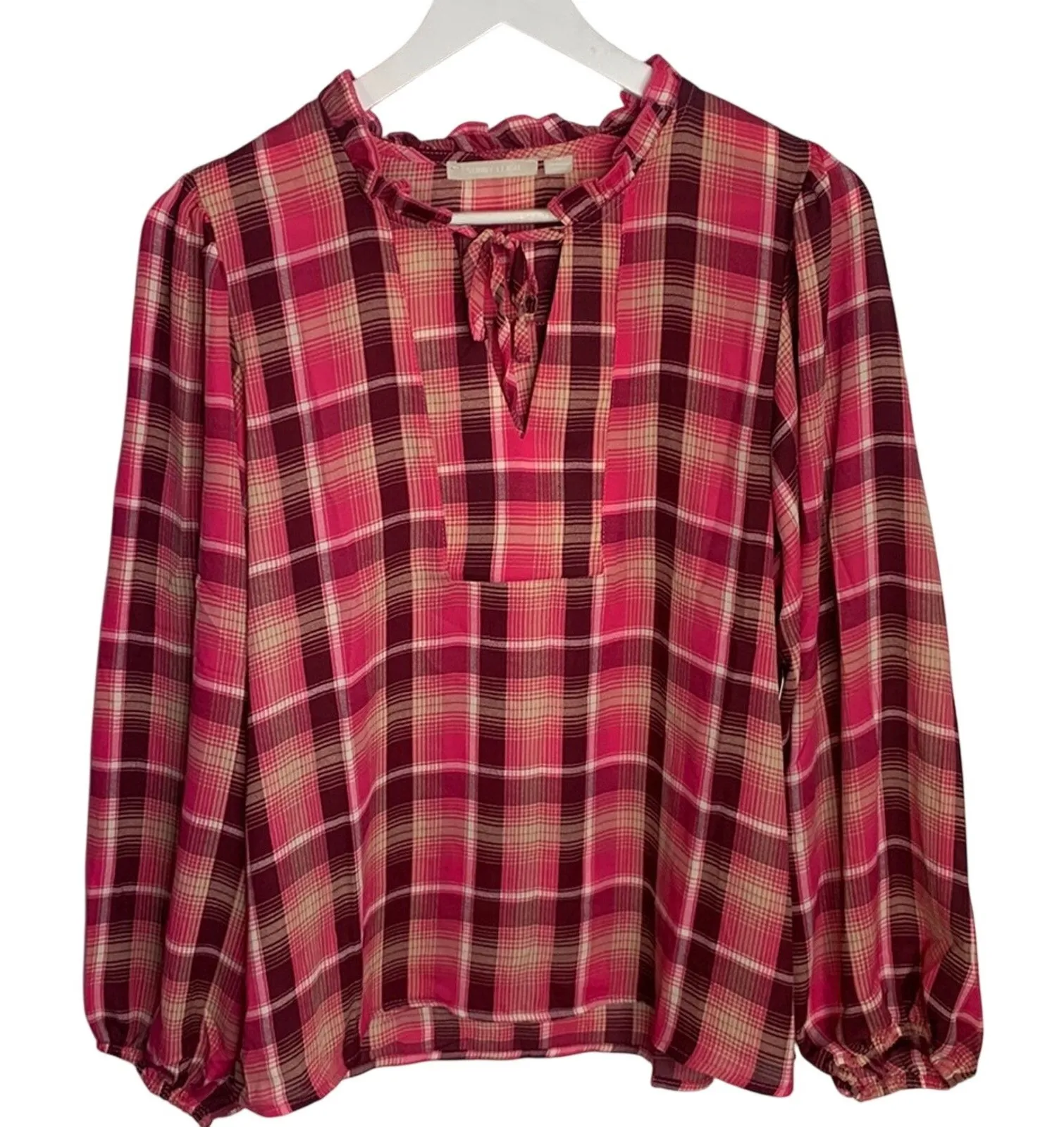 Sunny Leigh Ruffle Trim Plaid Blouse W-225 New with Tag Sz M Pink Size M - $36 New With Tags - From June