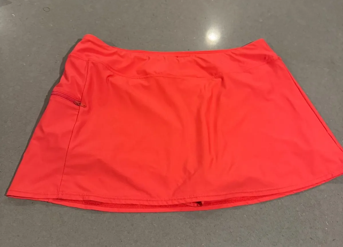 Bin d Keywords: athletic skort, tennis skirt, golf skirt, built in shorts, athletic wear, activewear, sporty, performance, athleisure, bright orange, quick dry, moisture wicking, skort XL, summer skirt See photos for condition and measurements.