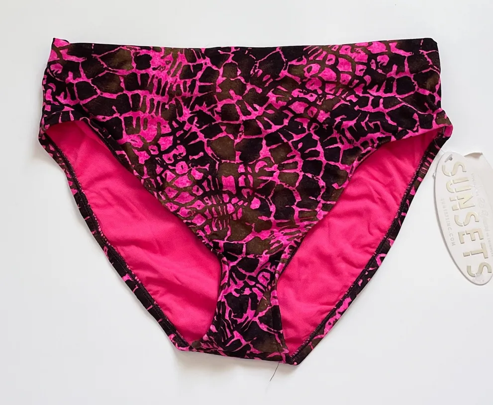 Swimwear Brand: Sunsets Size: Small (**please see photos for approximate measurements as I feel this runs a little big**) Style: “Coral Reef” high waisted seamless bikini bottoms. Marbled pink and brown animal print. Fully lined. Interior elastic waistband. Hand wash garment care. Condition: New old stock (NOS) with tags. Comes from a smoke free home. Please feel free to ask any questions before purchase. I typically ship within 24 hours but please be advised that I don’t ship on Saturdays or Sundays. Thank you for understanding!