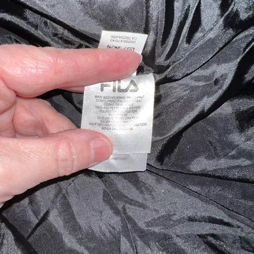 Chic black puffer coat by FILA. Features a stylish fur-trimmed hood and bold logo on the sleeve. Ide... Show more